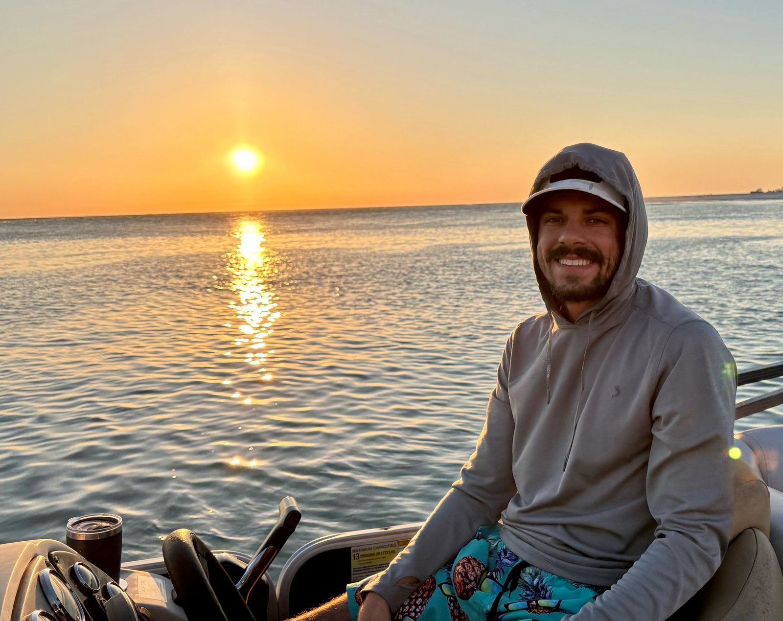 Fast forward to age 21, Caleb packed his bags and headed to the Florida coast, driven by an unexplainable pull to the ocean. Starting from scratch, he worked his way up from scrubbing boats to mastering the art of navigation, mechanics, and everything in between. Today, he’s the proud captain of a pontoon boat that’s tailor-made for the kind of adventures he once dreamed