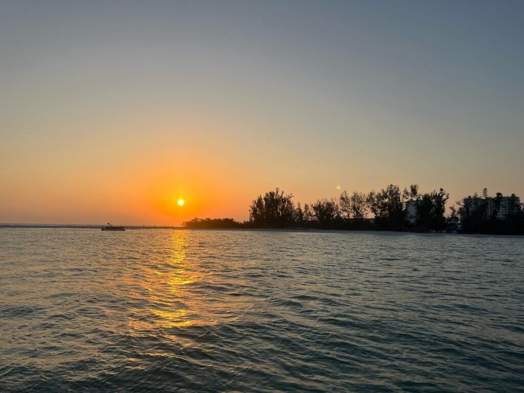 A sunset cruise in Sarasota Bay and surrounding islands, including Siesta Key, Lido Key, and Longboat Key, offers an unforgettable experience of natural beauty, serene waters, and a golden-hued sky reflecting on the Gulf of Mexico.